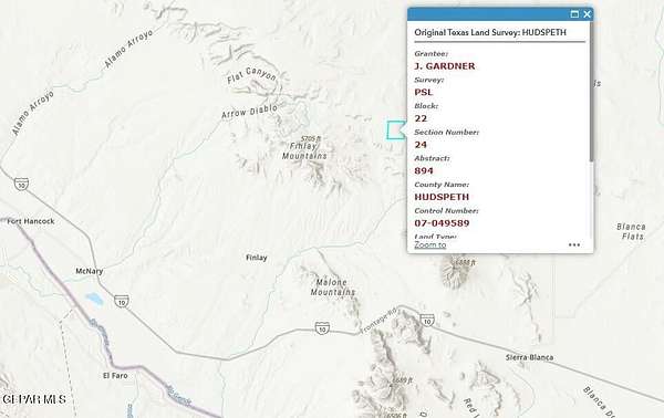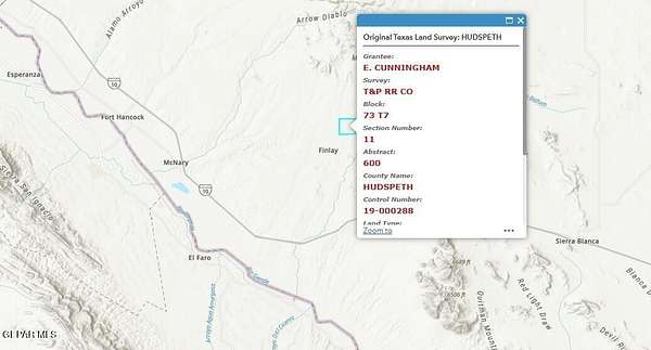 Offering a stunning mountain view and rich in wildlife, this property is conveniently close to Fort Hancock and Sierra Blanca, providing ample amenities. (These are two lots with a combine 63.24 Acres). The land is ideal for recreational activities such as hiking, camping, and horse riding. Currently, the land is unimproved with no designated zoning for construction, and utilities are not present. However, future development has the potential to significantly enhance the property's value. The property is conveniently located approximately an hour's drive from El Paso. All images represent the surrounding area of the property. The pin location provided is an approximate indicator of the actual site. For more information call Hudspeth County.