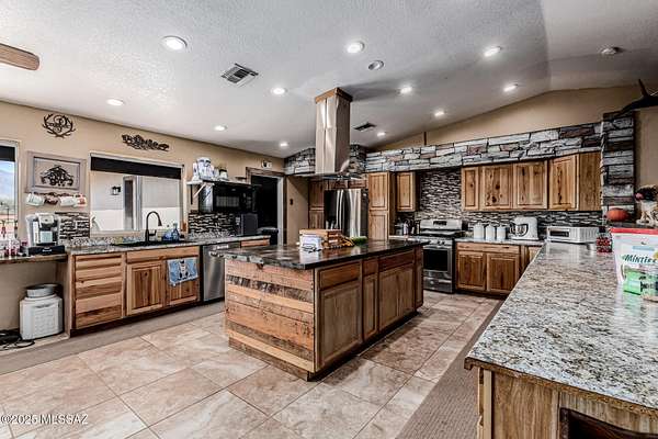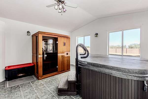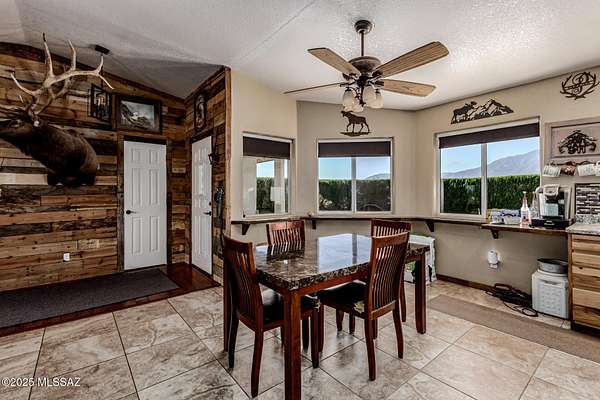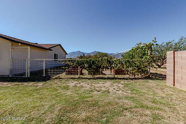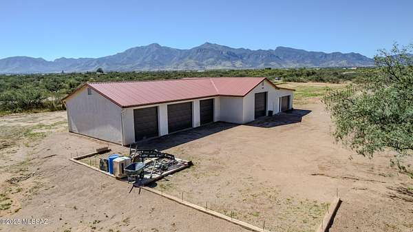 Exquisite Home with Breathtaking Mountain Views on 4.31 Acres. Welcome to this stunning 2,824 sq. ft. custom home offering the ideal balance of luxury, comfort & versatility. This beautiful property features a split floor plan with three comfortable bedrooms, exercise room & bonus room. Kitchen & living room have been combined to create a spacious & open great room, with a large island, perfect for entertaining. Remodeled kitchen incl gas range with oven, additional cooktop on the butcher block island & abundant counter space. There is a butcher block breakfast bar & adjacent dining area. Elegant indoor custom shutters enhance windows. Flooring is a blend of ceramic tile & wood. A pellet stove/fireplace adds warmth & charm to the great room. The spacious & comfortable master suite features a custom-designed walk-in closet, a dedicated space ideal for a home office or workout area and private access to a spa & sauna room, both of which will remain with the home. The en-suite bathroom is thoughtfully designed with a separate vanity & dressing area, a Jacuzzi tub, a walk-in shower & a private commode room. The closet opens both to the bedroom & to the bonus room. Step outside to a fully enclosed backyard surrounded by a block wall, offering a covered patio, ramada & firepit perfect for outdoor living & entertaining. A separate, fenced garden area includes raised beds, thriving grapevines & several mature fruit trees. In addition to the attached two-car garage, the property includes a detached garage, providing five additional spaces. This includes an enclosed RV parking. One of the bays in the detached garage is powered. All garage doors are fully insulated. While electricity has not yet been extended to the remaining bays, installation of electronic garage door openers has already been pre-paid. Recent upgrades include a new shingle roof on the main home & a durable metal roof on the detached garage structures. Kitchen appliances include a Maytag washer & dryer set (2018), Maytag dishwasher (2018), Kenmore refrigerator, Kenmore range/oven (2018), Bosch gas cooktop (2018) on the island, along with a new Hotpoint microwave & Whirlpool exhaust fan. Washer & dryer are located between kitchen & attached garage. Property has Starlink. The sauna is by Dynamic Sauna & the hot tub is Aqua Terra. The property also includes a horse arena with stunning views of the Huachuca Mountains. Bonus Features: Approximately $8,000 worth of high-end materials for a master bathroom remodel are stored on-site & may be available for purchase or negotiation. Frames for one garage door (currently not installed) are also included. Foundation has been laid for storage shed. Additional materials available. Located just 20 minutes from central Sierra Vista (pop 47k), home to Fort Huachuca Army Base, this property offers proximity to shopping, dining & entertainment while providing peace & privacy away from city congestion. Military retirees will also benefit from full access to base services. Enjoy nearby hiking, history & nature. The region is rich with historical significance, from the Apache Wars to Civil War landmarks. Outdoor enthusiasts will appreciate easy access to Parker Canyon Lake, Patagonia Lake & Pena Blanca Lake ... all just a short drive away. All reasonable offers will be considered.