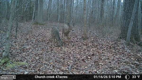 Whether you're after trophy Sika deer, mature whitetails and turkey, this property puts you right in the middle of it all. A rare chance to own a premier Eastern Shore hunting tract with unlimited potential. 47+ wooded acres, backs to large tract of woods. Property boasts mature pines and hardwoods, holly throughout and thick bedding cover. Sika deer, whitetail and turkeys call this property home. Established trails on the property make for easier access. There is a well established turkey population, Church Creek is one of the areas wild turkeys were released. High, dry ground offers an excellent possibility for a homesite, ideal for a private residence or a custom hunting lodge. This property is favorable for an approved perc site, perc test will need to be done. Build your dream home and create your very own private outdoor oasis. Dorchester County has a proven track record of producing trophy hunting. Timber income potential. Talk about the perfect location, here it is! Minutes from the town of Cambridge for shopping, amenities and restaurants. Located just past Emily's Produce on the left. For the outdoorsman this is a premier opportunity for hunters and nature enthusiasts alike. Photos are recent Fall/Winter 2025