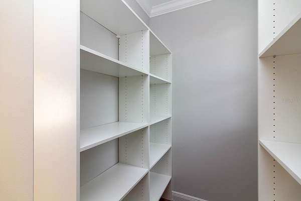 - Built-In Features, Ceiling Fans(s), Coffered Ceiling(s), Crown Molding, Eat-In Kitchen, High Ceilings, Kitchen/Family Room Combo, Open Floorplan, Primary Bedroom Main Floor, Solid Surface Counters, Split Bedroom, Stone Counters, Thermostat, Tray Ceiling(s), Walk-In Closet(s)