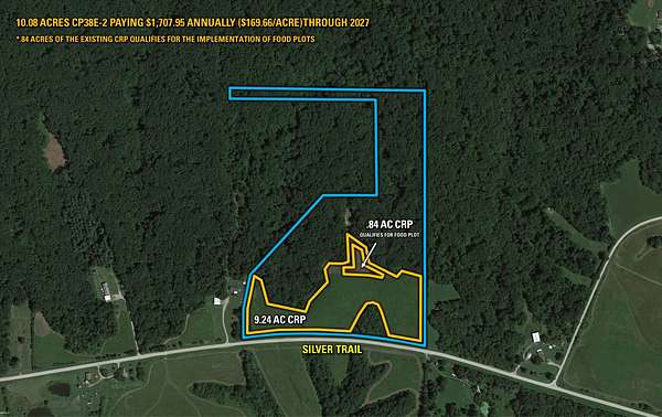 The farm features 10.18 acres that are currently enrolled into the attractive CP38E-2 CRP program with an annual payment of $1,707.95. This particular program is designed to create high-diversity grasslands with native plants for quail and other wildlife, featuring a mix of grasses (like little bluestem) and wildflowers (like sunflowers, coneflowers) for food, cover, and insect forage, promoting open ground for chicks while maintaining canopy protection. Furthermore, .84 acres of this program can be utilized as food plots for wildlife, benefitting the overall health and holding capacity for deer, turkeys, game birds, and other wildlife.