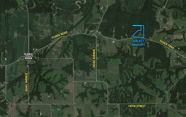 Peoples Company is pleased to offer this 28.96 acres m/l recreational and building site tract located just east of Floris in Davis County, Iowa. The farm can be accessed from the south via the custom, steel gate access off of Silver Trail. The property features an ideal combination of hardwood timber, creek bottom, CRP acres, and a secluded food plot - ideal for excellent hunting and a beautiful building site location.