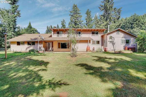 Est $4,972/moExceptional 10.11 AC Silverton Hills Homestead private & secluded on two tax lots. Featuring 5bd-3ba-3218sqft custom built home. Nail stone accents, high ceilings open beam design 3 fireplaces. Lrg front rm & family rm, big kitchen w/tile floors, quartz counters, updated windows. Fenced pasture livestock ready, sm pond, lrg detached garage + 4 farm bldgs. Mature timber and year around powers creek flows through property. Park like setting.
