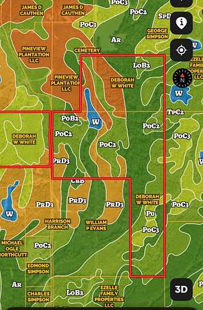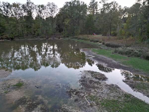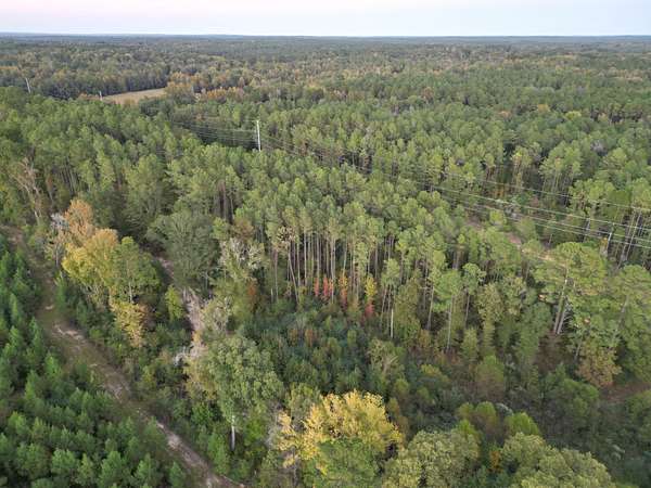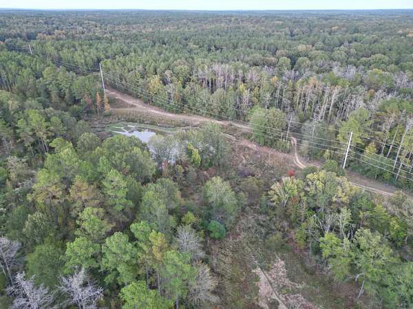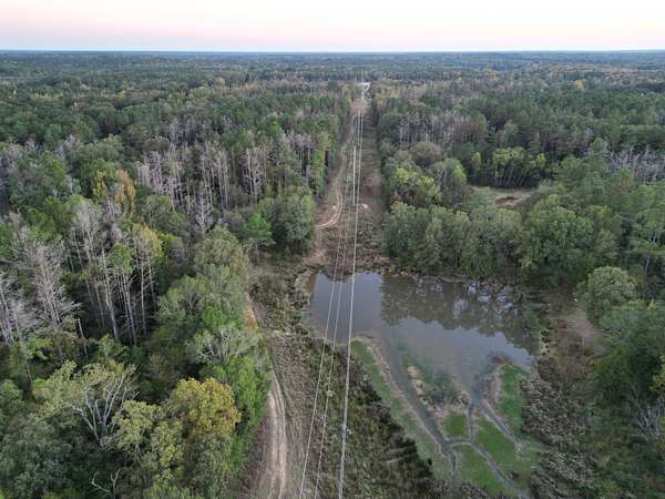A beautiful potential cabin site overlooks a small pond that could easily be expanded. A transmission line runs north and south through the center, creating ideal wildlife corridors and multiple food plot locations.