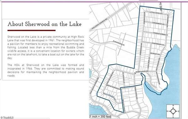Est $129/moGreat opportunity to own a lot in the Sherwood On The Lake subdivision, located on High Rock Lake - North Carolina's second-largest lake. This property offers lake access through the HOA's private boat ramp, picnic area, and swimming area, making it perfect for fishing, boating, or enjoying the water. Ideal for a vacation home or manufactured housing, this lot provides an affordable way to enjoy lakeside living in a peaceful community setting. No septic information or survey is currently available. Buyer to verify all utility and building requirements with the county WWW.SHERWOODONTHELAKE.COM