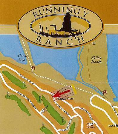 Running Y Road to Left at 4 Way Stop, Left on Merganser, Right on Thrush, Left on Siskin OR Left on Kestrel, Left on Siskin