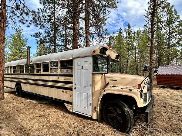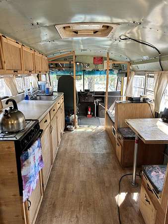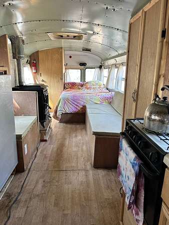Two 40' Skoolies (School buses converted into off-grid and/or shore-power enabled tiny houses on wheels- one is a Bluebird, the other is an International)