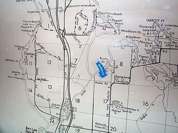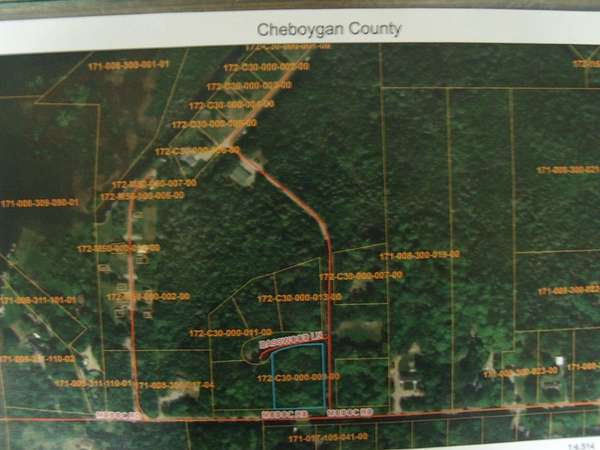 From Indian River take Club Rd to Onaway Rd to E. Mullett Lake Rd to L on Bowersock L on Modoc R on Cedar Springs , property left corner of Modoc Road & Cedar Springs Lane