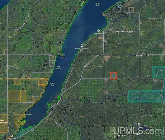 Beautiful square 40-acre wooded parcel located in Skanee, Michigan, featuring approximately 1,320 feet of year-round gravel county road frontage. Electricity and high-speed fiber internet are available at the street, making this an excellent location for a recreational camp or future year-round home. Conveniently located near the Huron Bay Trading Post for fuel and snacks, Huron Bay, Witz Marina, Finns Bar & Grill, Mt. Arvon, area ATV trails, and scenic waterfalls. Enjoy privacy, easy access, and some awesome history behind the surrounding area--all in the heart of Michigan's Upper Peninsula. Property tax amounts are not zero and will be subject to change following the sale. GIS mapping and acreage are approximate; buyer to verify all property lines and information to their satisfaction.