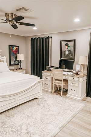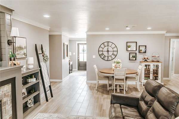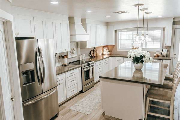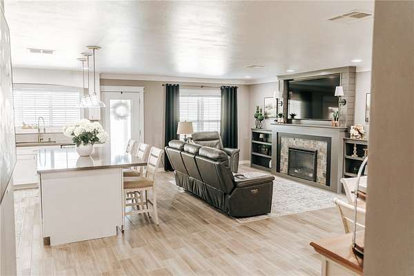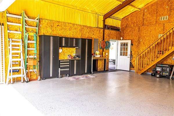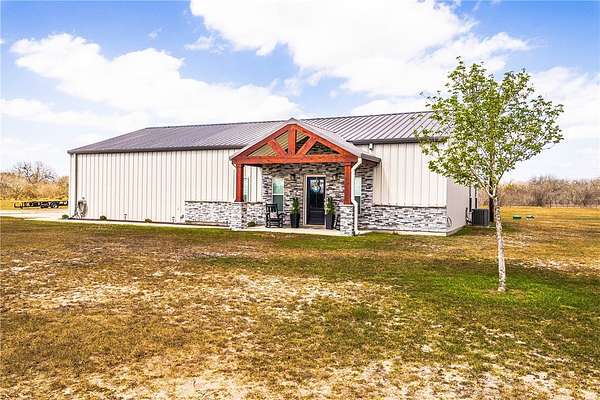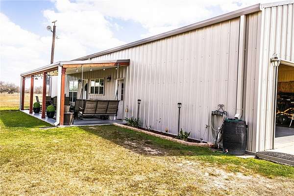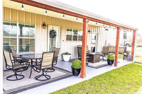 This beautifully designed Barndominium, built in 2018, offers the perfect blend of modern living and rustic charm, situated on 4 acres of peaceful, private land. Featuring 2 spacious bedrooms and 2 bathrooms, the home boasts an open-concept floor plan with high ceilings, creating a bright and inviting atmosphere that seamlessly connects the kitchen, dining, and living areas. Built with durable materials and attention to detail, it provides both comfort and low-maintenance living. The property is fully enclosed with a sturdy pipe fence, offering security and a sleek, country look. A large covered patio provides the ideal space for relaxing or entertaining, while the expansive 4-acre lot gives you room for outdoor activities, gardening, or potential expansion. Experience the tranquility of country living with the convenience of being close to local amenities - don't miss the chance to make this exceptional property your own!