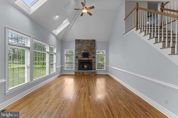 - Crown Moldings, Dining Area, Double/Dual Staircase, Eat-In Kitchen, Entry Level Bedroom, Family Room Off Kitchen, Gourmet Kitchen, Island Kitchen, Jetted Tub Bathroom, Open Floor Plan, Pantry, Skylight(s), Walk-In Shower Bathroom, Water Treat System, Window Treatments, Wood Floors
