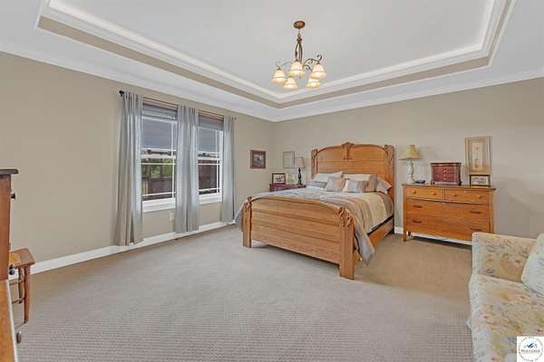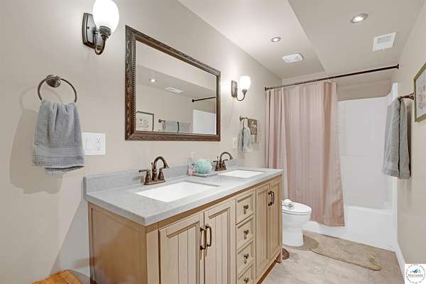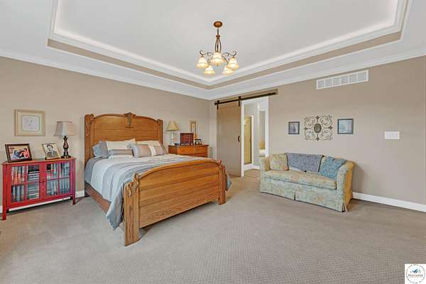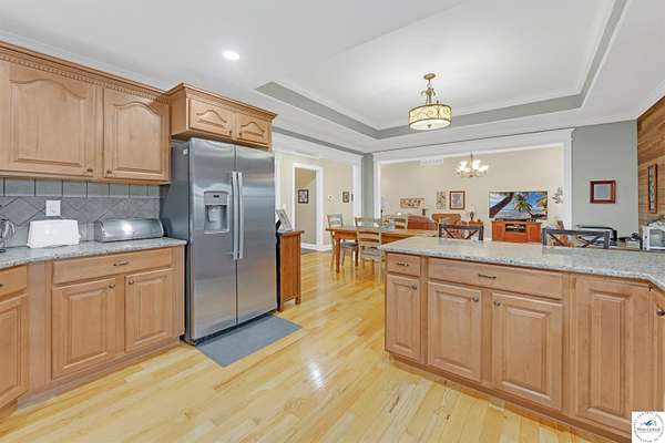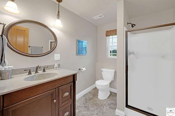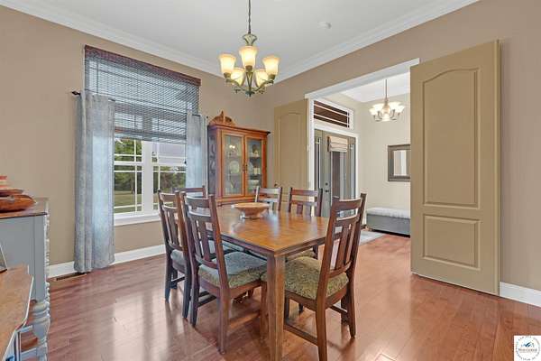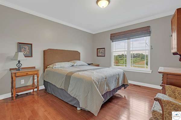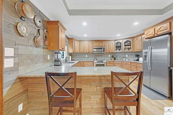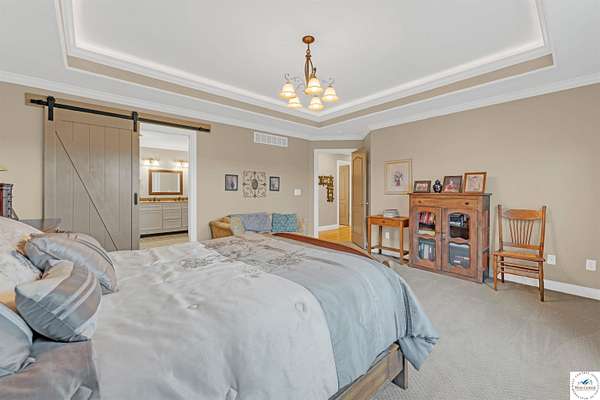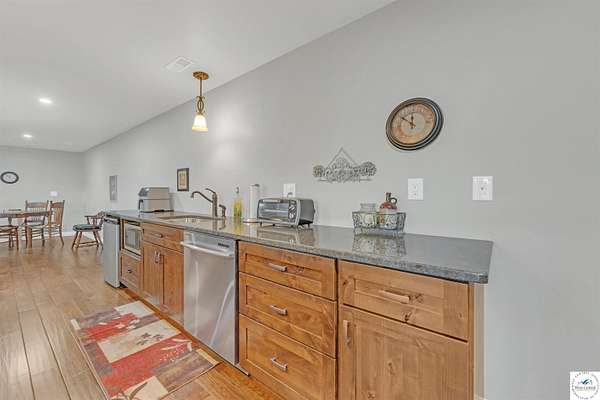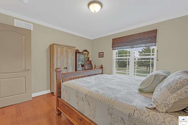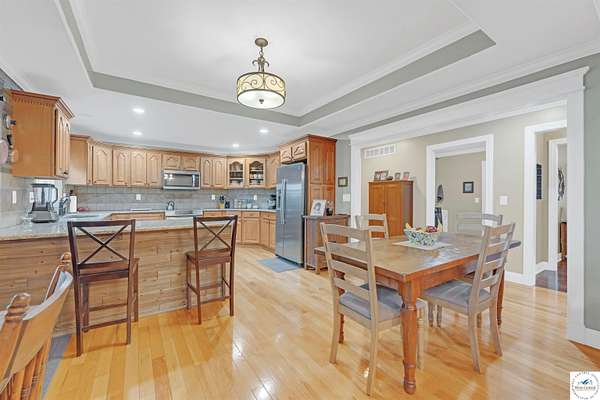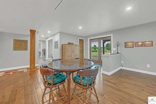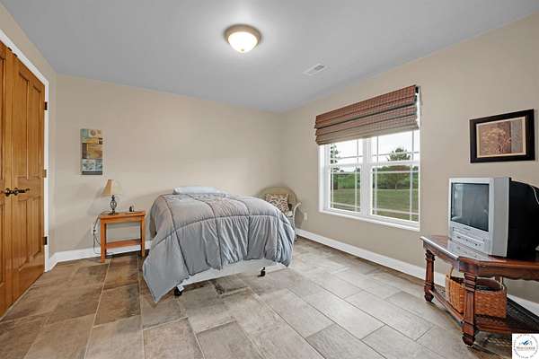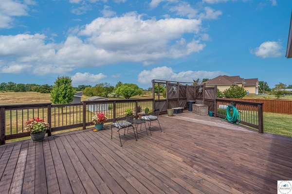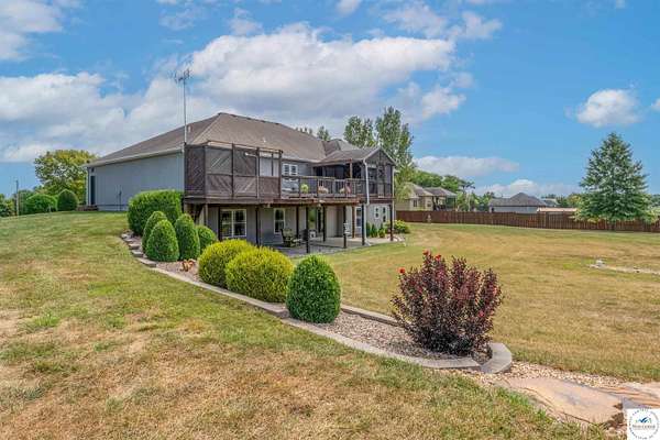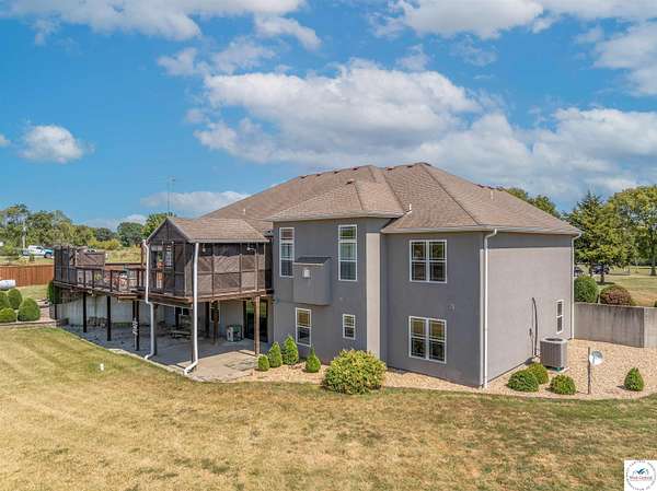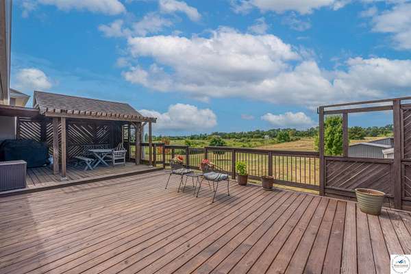 This stunning 5 bedroom, 5 full bathroom home offers the perfect blend of comfort and functionality with room for everyone. The main floor boasts a bright dining room, convenient laundry room, and a spacious living room anchored by a cozy gas fireplace--the only gas feature in the home--that helps keep winters warm and inviting. The primary suite features an en-suite bathroom with a jetted tub and separate shower, while two additional bedrooms are thoughtfully located on the opposite side of the home for privacy. The finished walk-out basement provides exceptional living space, complete with a large family/rec room, two more bedrooms with egress windows, a bonus room ideal for an office or non-conforming bedroom, and a second kitchen perfect for entertaining. Enjoy the outdoors with 5.70+/- fenced acres, a large partially covered back deck for shade, and plenty of room for recreation. The garage is equipped with a mini-split (installed approximately one year ago) for year-round comfort, while a hot water recirculating system ensures quicker access to hot water throughout the home. From the functional floorplan to the thoughtful upgrades, this home offers space, comfort, and acreage--ready for its next owner.