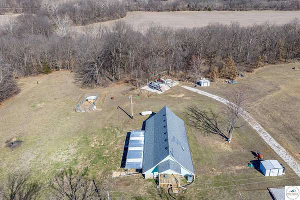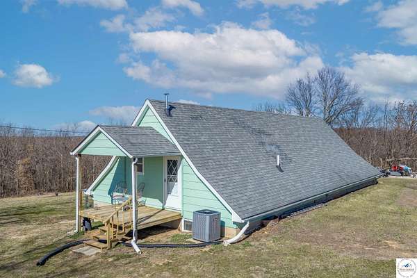 Tucked away on 4.80+- partially wooded acres, this charming 3-bedroom, 2-bath A-frame earth contact home offers privacy and peaceful country living. Two bedrooms are located on the main level, with a spacious primary bedroom upstairs. The upper level also features a second family room, providing flexible living space. The bright and airy living room is filled with natural light and anchored by a cozy fireplace, while the kitchen is conveniently located on the main level for easy everyday living and entertaining. A large unfinished laundry/utility room offers excellent storage or future expansion potential. Multiple closets throughout, two storage sheds, and ample parking for vehicles, trailers, and recreational toys complete the property. Enjoy space, nature, and character--all in one unique setting!