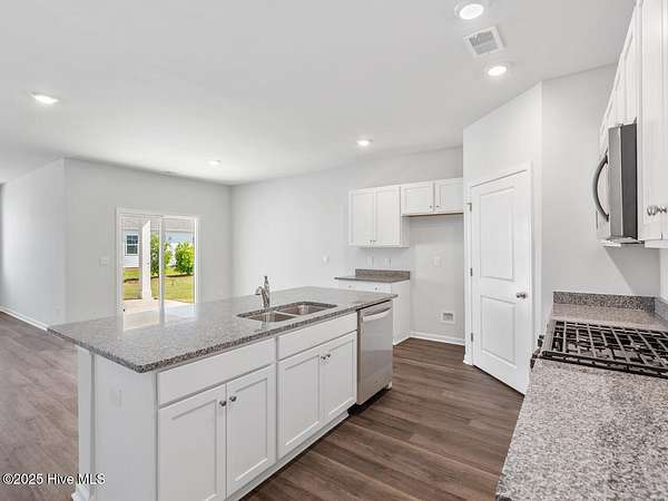 Welcome home to the highly desired community, The Preserve at Tidewater, where coastal living meets comfort! Located just 10 minutes from North Topsail Beach and close to Stone Bay and the Courthouse Bay gate of Camp Lejeune! The Darby floor plan features an open-concept layout with a kitchen equipped with granite countertops, single bowl stainless sink, stainless steel appliances, including a smooth-top electric range, microwave, and dishwasher. The large island is great for gatherings. The Primary Suite offers a bathroom with a dual vanity, a walk-in shower, and a spacious closet. On the first floor, there are three additional bedrooms with low-maintenance LVP flooring and plentiful closet space! Upstairs, the Darby has a large bedroom, a game/living room, and a full bathroom, providing extra space for guests or a home office. This flexible design and premium finishes make the Darby a perfect choice for those seeking both comfort and style. The backyard of this home is the perfect size with an added bonus of greenspace behind for privacy. Home Is Connected(R) Smart Home Technology is included in your new home and comes with an industry-leading suite of smart home products including touchscreen interface, video doorbell, front door light, z-wave t-stat, & door lock all controlled by included Alexa Pop and smartphone app with voice! T