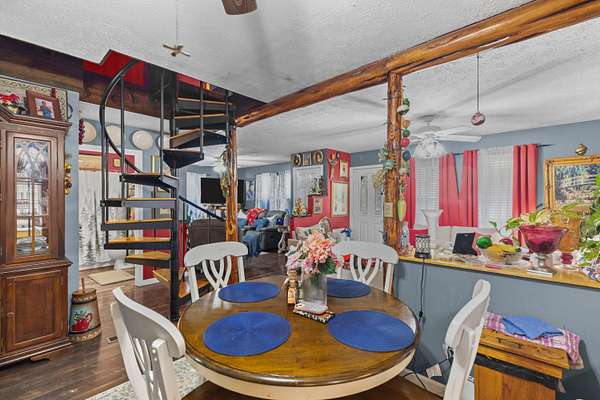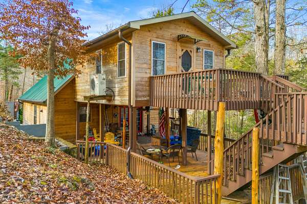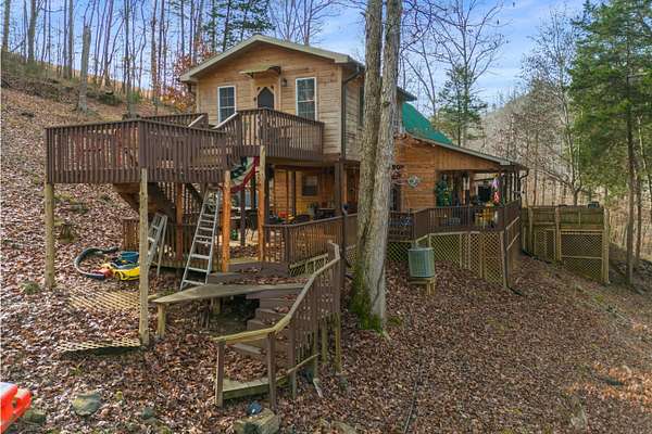 This truly is a one-of-a-kind East Tennessee property, offering nearly 7.5 unrestricted acres with room to breathe and enjoy the outdoors. The home features a wrap-around deck, an upper-level deck, and a covered front porch, giving you multiple spots to take in the peaceful surroundings.Inside, the kitchen has been thoughtfully updated with newer cabinets, appliances, and fixtures. The home offers 2 bedrooms and 3 full baths, including a primary bedroom with its own ensuite bath and direct access to the upper deck. Don't miss the character and charm of the spiral staircase--a standout feature that sets this home apart.Additional updates include connection to public water and a new heat pump scheduled for installation on 12-11-25.Conveniently located just outside of Sneedville and only about 35 minutes to Morristown, you'll enjoy quiet country living with easy access to town.Finish your evenings taking in the mountain air, watching wildlife wander through the property, or simply relaxing on one the many outdoor spaces!