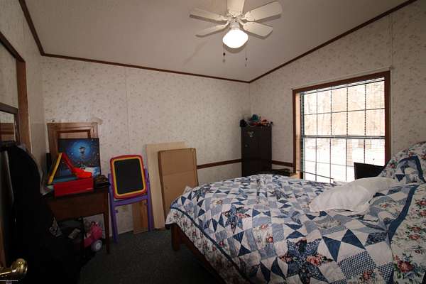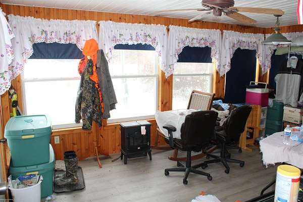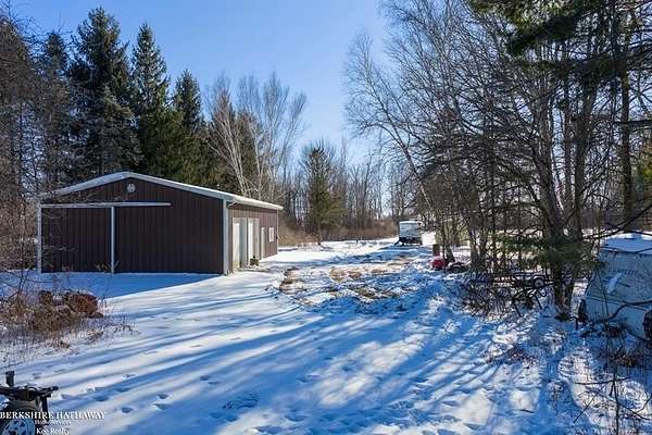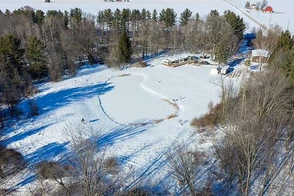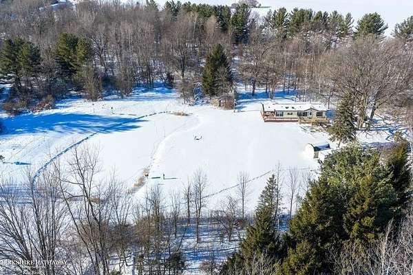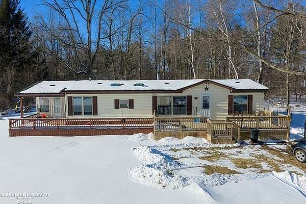 Beautiful 3-bedroom, 2-bath home situated on 24.434 acres with a large private pond--perfect for outdoor enthusiasts. Enjoy abundant wildlife, including deer, wild turkey and birds along with excellent opportunities for hunting, fishing, and swimming. The property features a spacious 30' x 53' 3 car garage with workshop, plus an extra-large concrete pad ideal for RVs and trailers. Nice open floor plan, LR with gas fireplace. The spacious kitchen includes an island, ample cabinetry, and all appliances. An additional sunroom overlooks the scenic countryside. The primary BR suite features a walk-in tub and separate shower. Also included a fenced area for dogs, utility shed and a large exterior deck. Recent updates include a new furnace and central air (2020) and roof (2021). Two wells service the property--one for the home and one dedicated to the pond. Enjoy peaceful country living with the convenience of nearby main roads and local shopping.