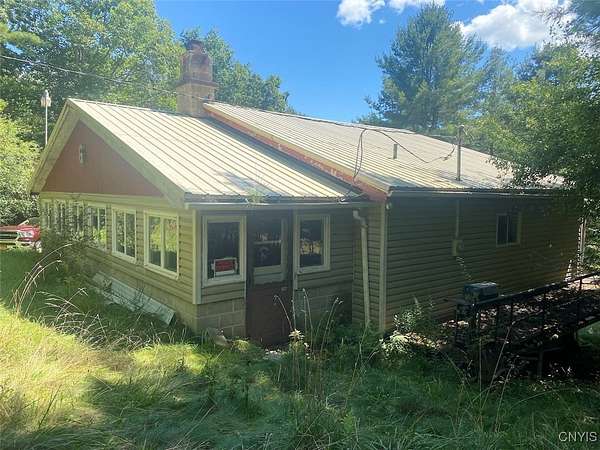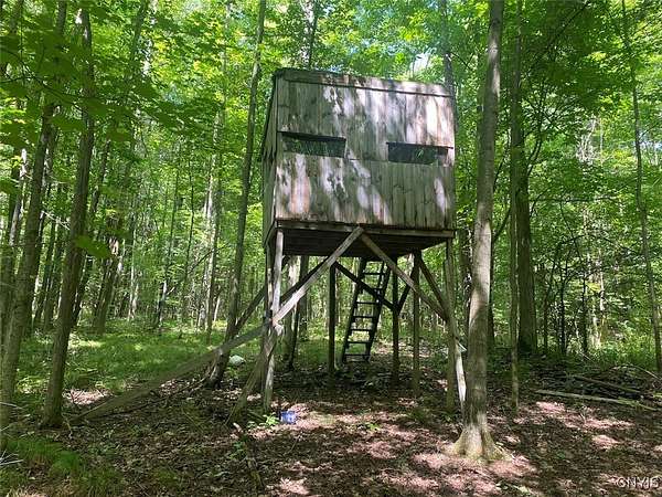This 47.8-acre property offers an incredible opportunity for anyone seeking seclusion, privacy, and the perfect recreational retreat in Scio NY, Allegany County. The driveway is located off a maintained year-round town road, and the cabin is surrounded by a beautiful tree line providing a peaceful escape from everyday life. The driveway with ample parking welcomes you onto the grounds. The cabin features a welcoming full-width mudroom for storage, an open-concept living and dining room highlighted by a large bar and stools for entertaining, and a cozy wood stove to keep you warm during the upcoming hunting season. The kitchen is set apart in its own space and is fully-equipped with plenty of cupboards and countertop space. The layout includes three spacious bedrooms ensuring room for family and friends. The basement is a great space for additional storage. Outdoors, a wrap-around porch offers the perfect place to relax and enjoy the views. A separate party shack adds extra space for gatherings though it will need some work to shine again. The land itself is a true highlight, nearly 48 acres of mixed hardwoods and softwoods, including mature oak trees, with ample whitetail deer sign making it an excellent hunting property. There is even an enclosed tree blind already in place. Also, there is a spring-fed pond. Beyond hunting, the property has potential for hiking, exploring, and simply enjoying the great outdoors. Surface rights convey. This cabin and property are being sold as-is giving the buyer the chance to bring new life into this rustic retreat with some labor and creativity. Whether you're looking for a family getaway, hunting destination, or recreational haven, this property has all the makings of a special retreat. Located just minutes from the Genesee River for great fishing.