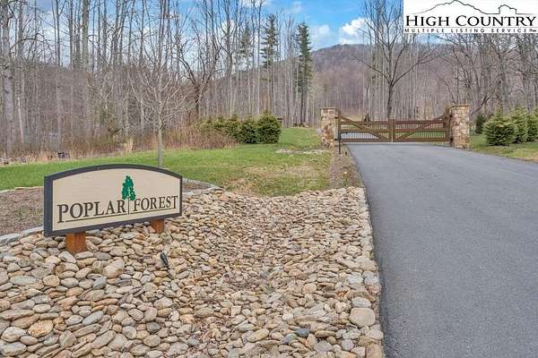 Discover Poplar Forest—where privacy, natural beauty, and convenience come together just minutes from downtown Boone. This exceptional 1.71-acre homesite offers captivating views of Elk Knob State Park and Snake Mountain, creating a breathtaking backdrop for your future mountain retreat. Gently sloping and thoughtfully positioned, the property extends to a peaceful stream, providing a serene, private setting surrounded by nature. With underground utilities already in place and a preliminary soil test completed, this lot is well-prepared for your custom build. Poplar Forest is a gated community featuring paved roads, underground power, and fiber-optic internet—offering modern convenience while preserving the tranquility of mountain living. With a minimum build requirement of just 1,200 square feet, the community allows both long-term and short-term rentals, as well as modular homes with Architectural Review Committee approval—making it ideal for a full-time residence, second home, or investment opportunity. Located less than 10 minutes from Boone, you’ll enjoy easy access to some of the High Country’s premier outdoor recreation. Explore the trails of Elk Knob State Park, fish or kayak along the New River, mountain bike at Rocky Knob, or hit the slopes at nearby ski resorts. A rare opportunity to build your dream home in one of the area’s most desirable and accessible mountain communities.
