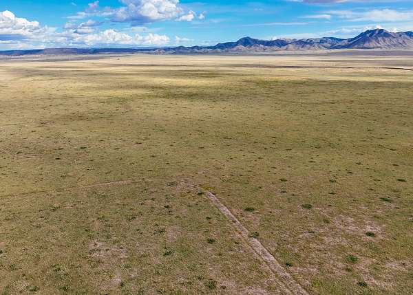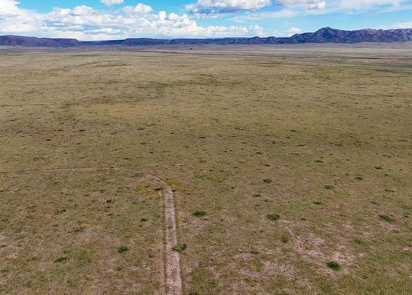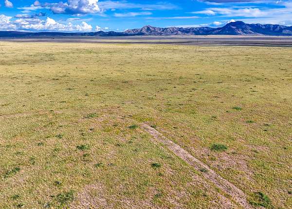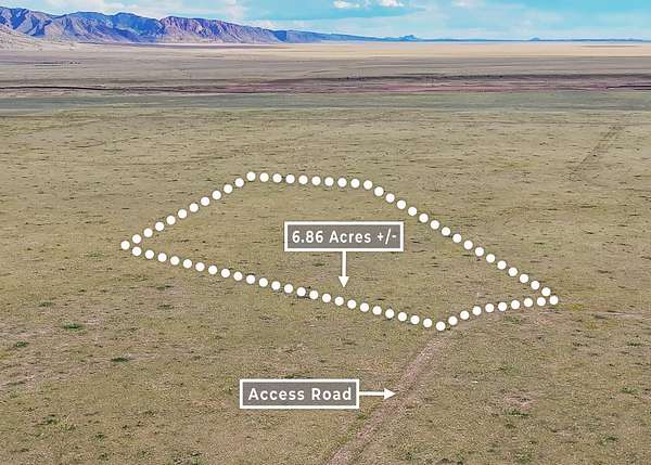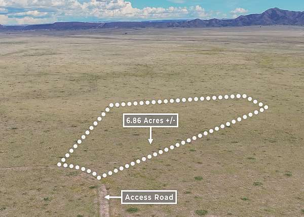The parcel is surrounded by desert grasslands with native vegetation and is set against the backdrop of the Manzano Mountains.
