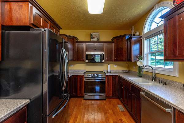 Welcome to this meticulously maintained home offering a spacious floor plan on 3.5 acres. This property features three full bathrooms and a flexible floor plan with an optional fourth bedroom or bonus room to suit your needs. The home has been thoughtfully cared for and provides comfortable, functional living throughout. Outside enjoy a tranquil setting complete with a pond and barn, offering privacy, versatile space, storage or hobbies. This property blends well-kept interiors with scenic acreage for a truly inviting rural lifestyle. Conveniently located within 10 - 15 minutes of a wide array of restaurants and a large variety of all businesses types.