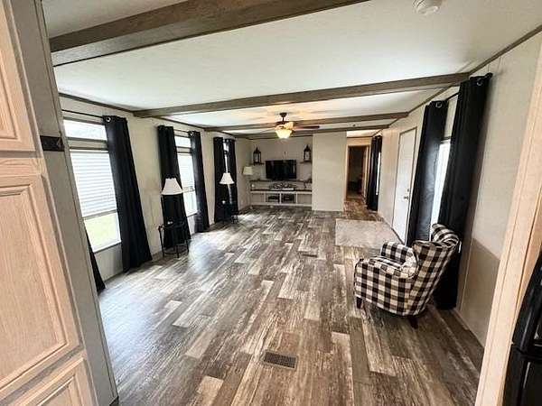 Est $1,051/moover two acres with a lovely pond and a great manufactured home built in 2020 with 2 beds 2 baths (one on either end of the home) with huge great room and open kitchen. Front and back porch with covered parking. Come enjoy country living at its finest just east of Oakland proper. Luxury vinyl floor in living space and includes a laundry room. Only 4.5 years old and well taken care of with only one person living there since it was new. Underpinned with Hurricane ties and brick skirt
