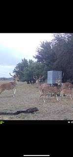 The ranch features a mix of cleared flatland--ideal for food plots--rolling hills with stunning views, and a dry creek bed shaded by towering live oaks, the perfect roosting spot for Rio Grande turkeys. An abundance of axis deer also roam the property, making it a prime hunting destination. Fenced and cross-fenced, it's well-suited for livestock operations. A water well powered by a solar pump, rock pila for water storage, and an overflow feeding into a dirt pond is perfect for both livestock and wildlife.