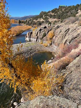 This acreage climbs gently from the river corridor into a sun-favored hillside with long views. Along the Rio Grande, striking rock shelves give the bank a dramatic, natural look. It's a picturesque interface: cliffs that feel private and protected, with access where you want it. With typical mountain excavation, the slopes yield excellent building envelopes oriented to the river and sky, in a corridor known for Gold Medal trout.