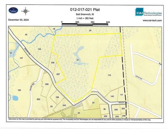 Est $3,074/moUnique East Greenwich opportunity for a homesite or family compound on over 23 acres. Privacy is unquestioned and access could not be more convenient to Rt. 2, Rt. 4 and Downtown East Greenwich while still feeling very remote. This site has significant wetlands and water features that will limit much of the land from development. Seller has not had any engineering done and buyers must do their own due diligence regarding future uses.