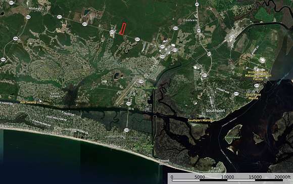 Est $11,652/moPrime commercial acreage at St. James/Southport for sale! This property is ideal for commercial development, located directly off of Highway 211 (Southport-Supply Rd) near the St. James Plantation entrance. Topography is level & wooded with over 430ft of road frontage & tons of road visibility/passerby traffic! Municipal water & sewer available. Property lies just outside of the city limits just minutes from Southport, St. James & Oak Island. Current road widening will be complete around Fall 2026 resulting in 4-lane highway frontage & increased road visibility/traffic for this property. Do not miss this incredible opportunity! Contact Listing Agents for more information!