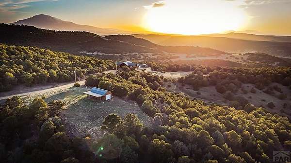 Beautiful 35-acre parcel in Blackhawk Ranch with a 12' x 32' weekender cabin already set up and ready to enjoy. Power to lot in place, and the cabin has a hot water heater for washing dishes and taking outdoor showers. Big mountain views in every direction-East Spanish Peak, Greenhorn, Pikes Peak, and the Wet Mountains. There's an easy build site right next to the cabin that looks out over the valley and takes full advantage of the scenery. Located at the end of a private spur road for extra peace and quiet. Nicely wooded with Pinon, Juniper, and Ponderosa. A great getaway spot with the basics already in place and room to grow if you're thinking long-term.