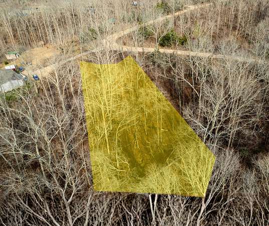 0.68-acre wooded lot in Hidden Valley Lakes subdivision in Hickman County, TN. Private setting with sloped terrain and gravel road access. Located about 1 hour from Nashville. Property is outside city limits with no county zoning; use governed by subdivision CC&Rs. Allows site-built homes (1,000 sq ft min) and qualifying mobile homes (720 sq ft min).