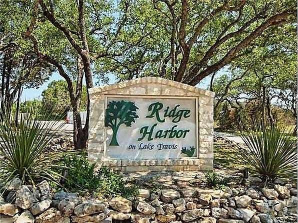 Welcome to Ridge Harbor, a gated waterfront community on the south shore of Lake Travis, now at its highest level in years! This property includes a detailed survey and complete architectural house plans by Kai Geschke Group. The idyllic neighborhood offers two private boat launches and a marina with 45 covered boating slips and 10 PWC slips for sale or rent, subject to availability. Additional community amenities include a swimming pool center with a splash pad and a covered area with BBQ grills, tennis and pickleball courts, a children's playground, and a lakefront park with picnic tables surrounded by gorgeous live oak trees. Ridge Harbor offers a perfect blend of comfort, convenience, and community, making it an ideal place to build your dream home. Lot 64 is over half an acre with level ground and large trees and shrubs along the road frontage for added privacy. Utilities include underground electric, water, sewer, and fiber internet! Located in Marble Falls ISD with a low tax rate of 1.35. The property is just minutes from local attractions like Krause Springs, Opie's BBQ, Spicewood Vineyards, and Muleshoe Bend Recreation Area. 30 minutes to Marble Falls, Horseshoe Bay Resort, and the Hill Country Galleria in Bee Cave. 1 hour to downtown Austin and Austin-Bergstrom International Airport.
