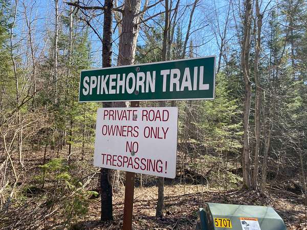 From Indian River, M-68, North on Club Rd. turn right on Old Onaway Rd. Straight through the stop sign to Eddy Rd, turn left. There will be a split, take a left, you will see a sign for Spikehorn Trail. Follow until you see the sign and a small cream colored shed, on the right.