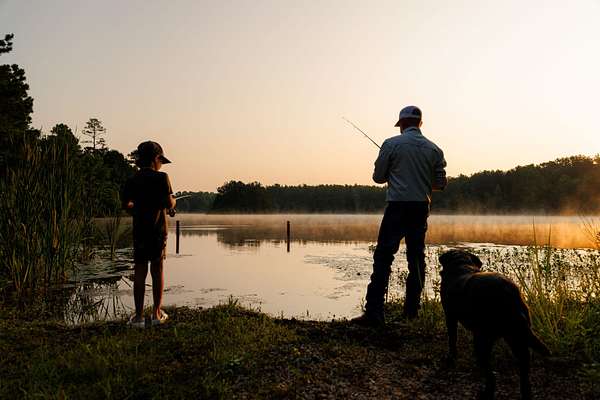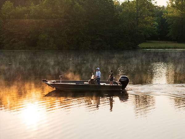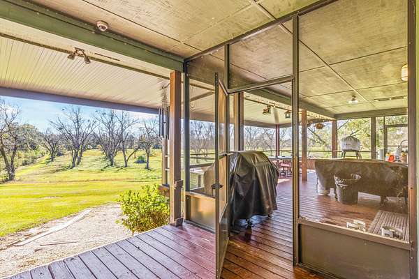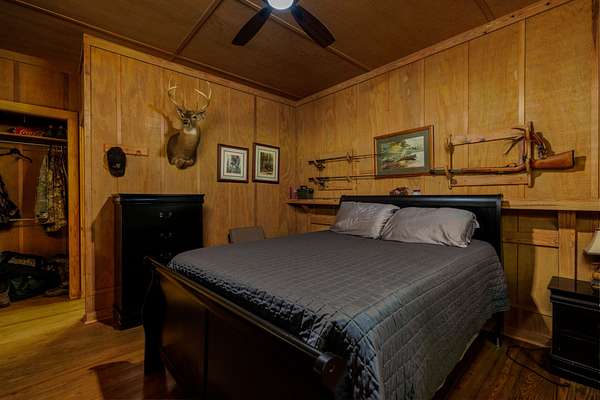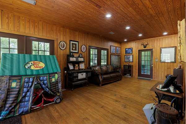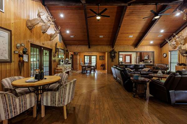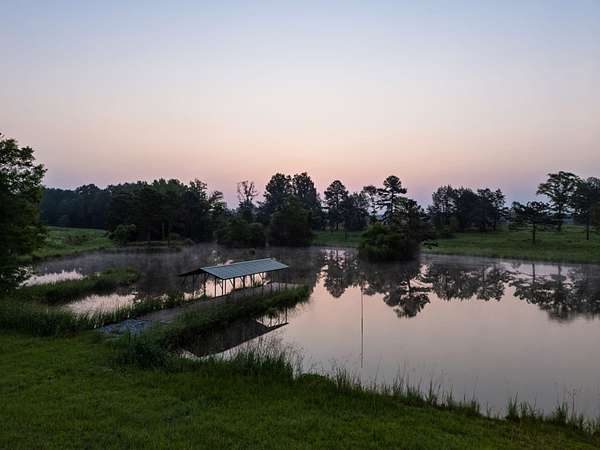 There are 3 lakes, an 8-acre scenic lake with a covered dock and pretty surroundings, a 9-acre lake with long views around it and the 85-acre lake that has almost a mile long water view and about 2.5 miles of shoreline with a new enclosed boat house to store boats and equipment. The fishing is fabulous, and the sunsets are stunning!