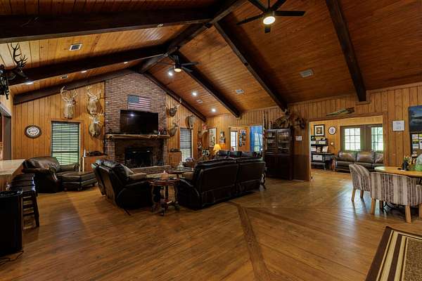 Barbour county 3,077 acres with an 8,000 sq. ft, fully furnished Lodge, a new 5,000 sq ft top end shop, an 85 acre, 9 acre and 8 acre lake, and close to Lake Eufaula. Includes 477 deeded acres and 2,600 acres under a 35 year transferable hunting lease at a discounted rate giving you the ablility to manage and hunt over 3000 acres until 2060. Also includes extensive equipment to manage the plantation. This is a total Turnkey Property, completly ready to go on day 1.