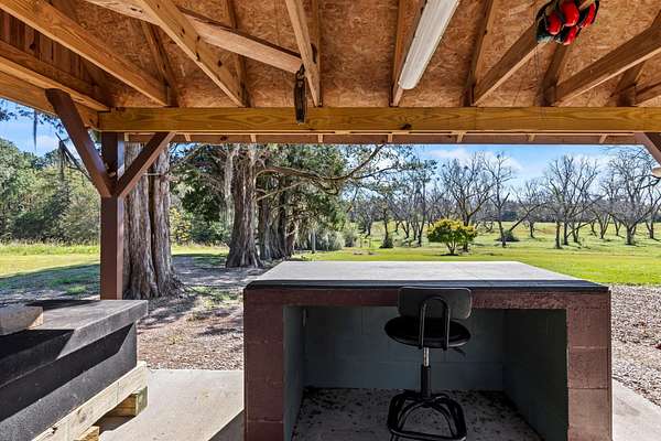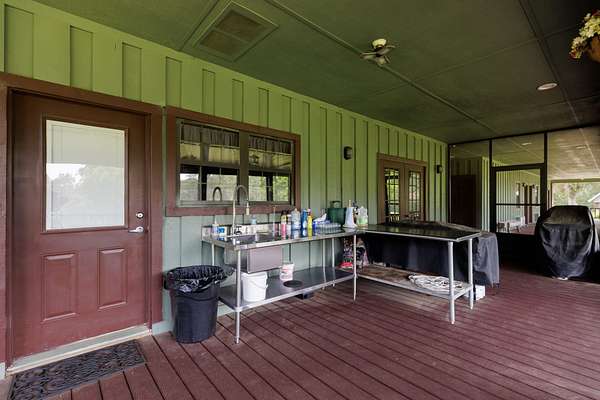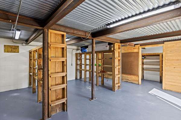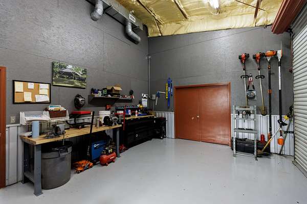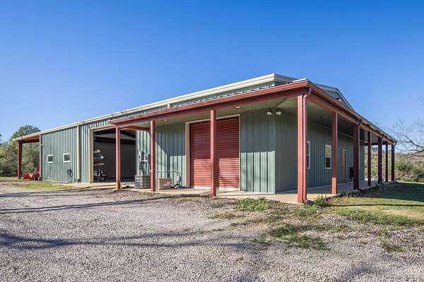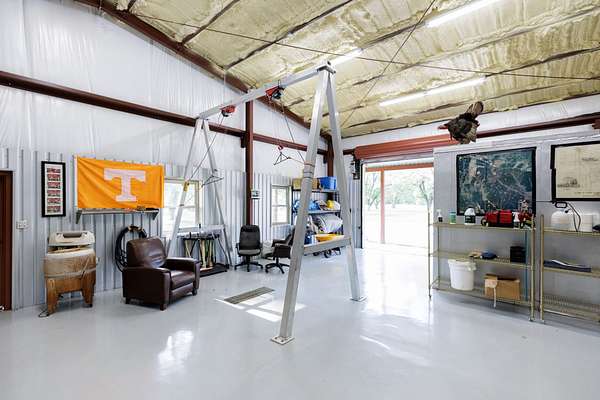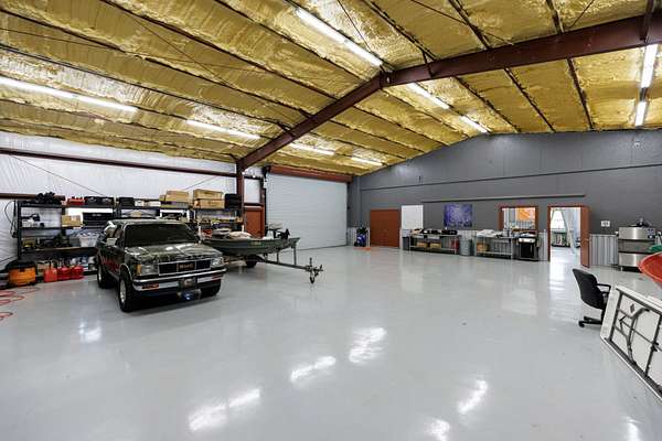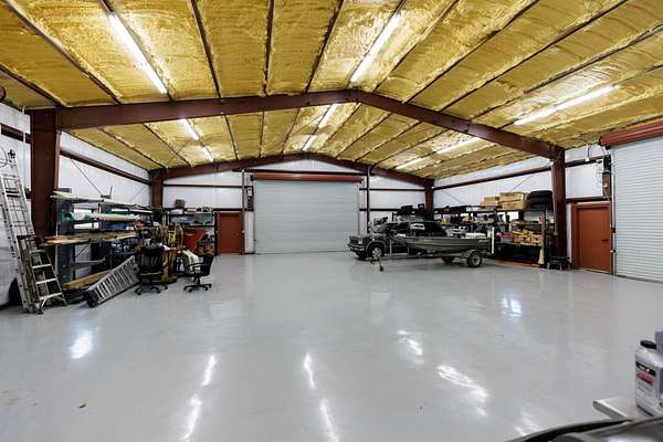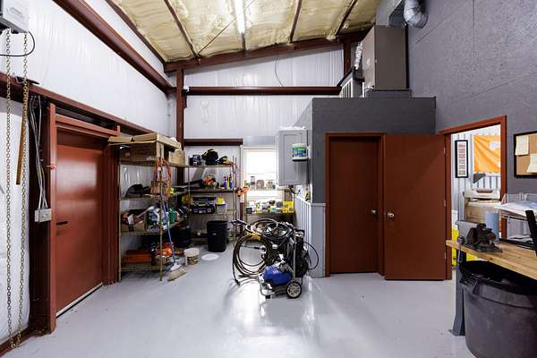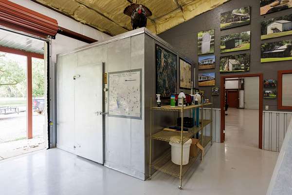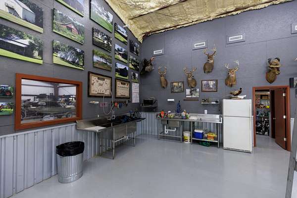 The 110' x 50'shop is one guys dream of. The entire building has spray foam insulation in the ceiling and insulation batting on the walls. There are large and extra-large roll up doors on 3 sides and work benches and storage units. About a third is enclosed as heated and cooled area with an electric deer lift and drain to clean game inside and out of the elements, a walk-in cooler, a TV and loungers to take that afternoon nap in and a sparkling clean inside tool room. Another third is to pull equipment inside with lots of work area. The remaining third is covered area to park equipment.