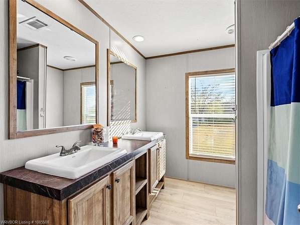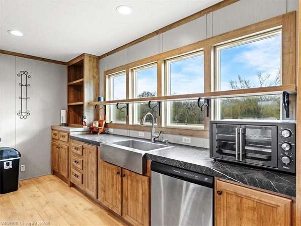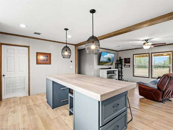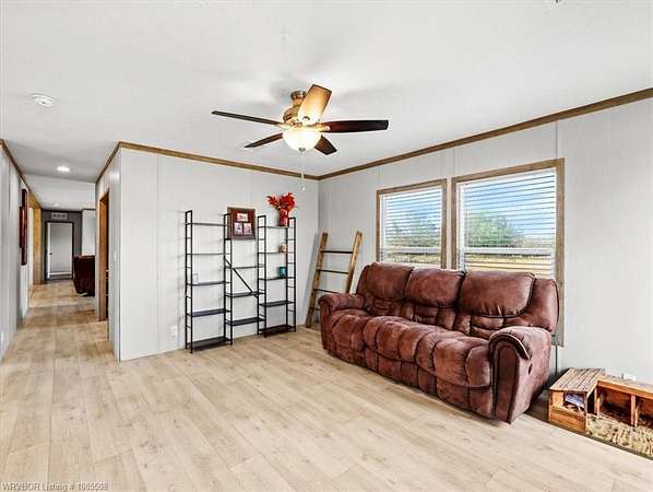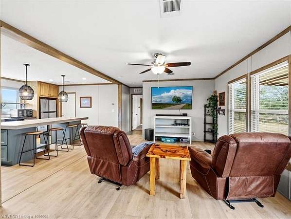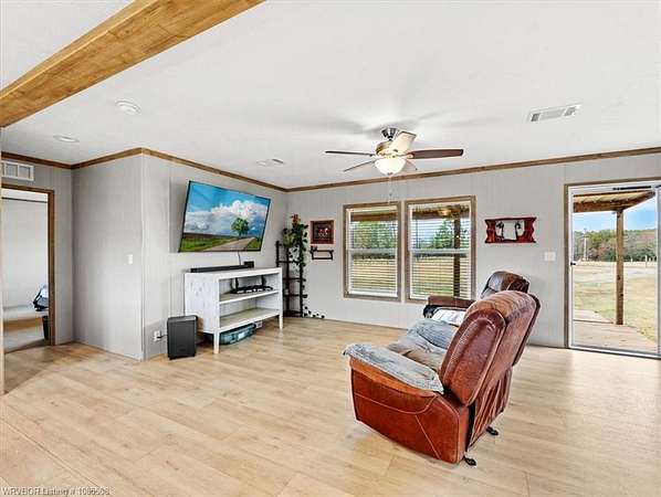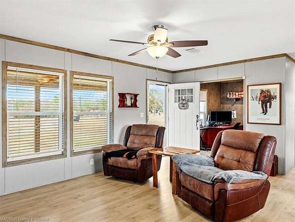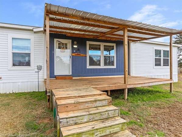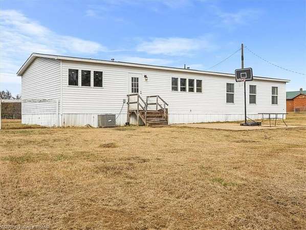 Move-in ready! This 2022 mobile home is waiting for you and your family just in time for the holidays. Featuring 1,685 SF, 3 bedrooms, and 2 bathrooms, it offers an open floor plan with an oversized island, two living areas, and a formal dining room (currently used as a home office). Situated on approximately 2.5 acres, you'll have plenty of space for gardening and that chicken coop you've always wanted. The home boasts a warm, neutral palette with modern, up-to-date touches throughout. Two living areas offer extra space for the kids and complement the split floor plan. The second living has a beautiful Electric Flame Fireplace. The front deck will allow you to sit and have morning coffee, and the back patio slab could make a great area for family entertainment. This is the perfect starter home, offering great value without breaking the bank. Seller is offering an approximately 2.5-acre split, with additional acreage available, and will provide a survey. Enjoy country living just a few minutes from Spiro and only 15 miles from Fort Smith. This home should go all loan types. Let's get you qualified for a USDA loan and see if we can get you in this home with zero money down. Call for a private showing today!!!