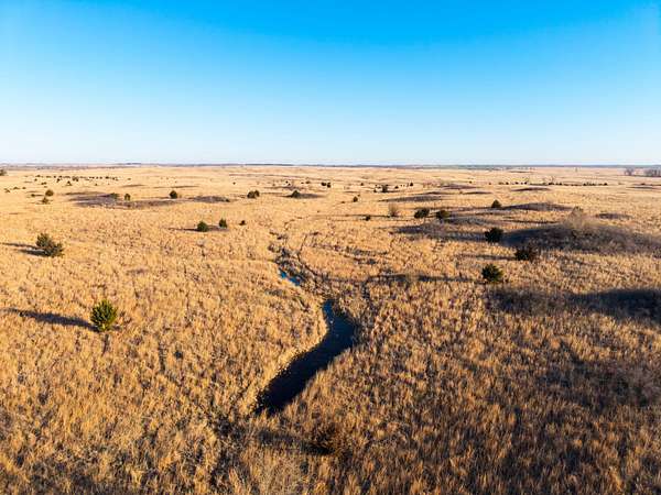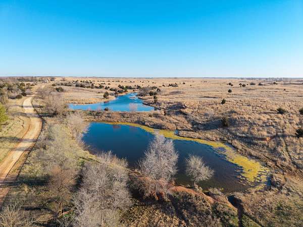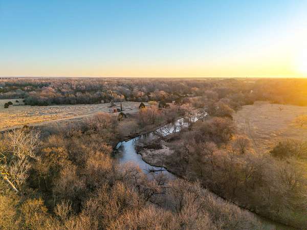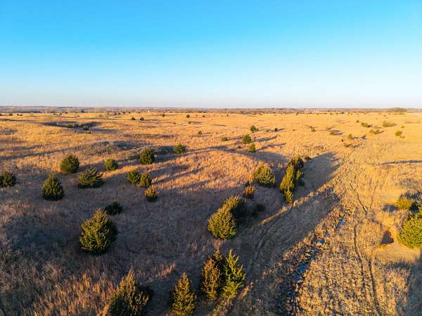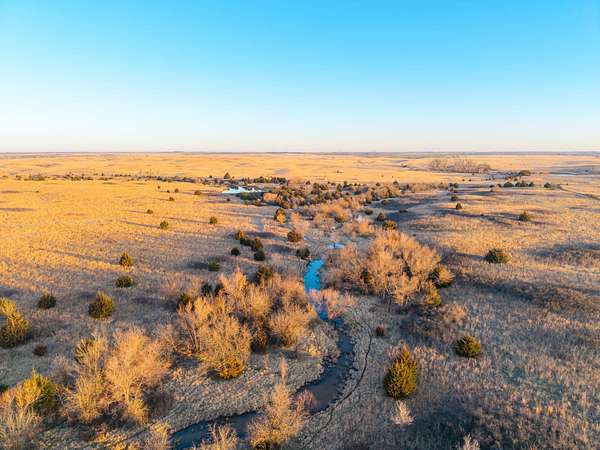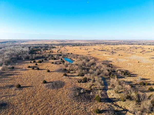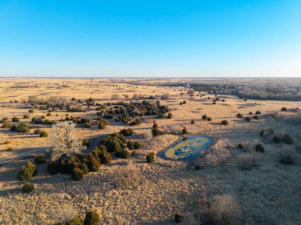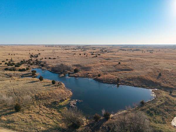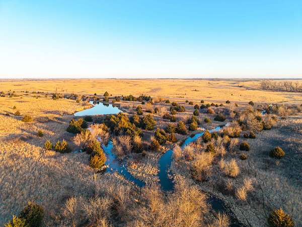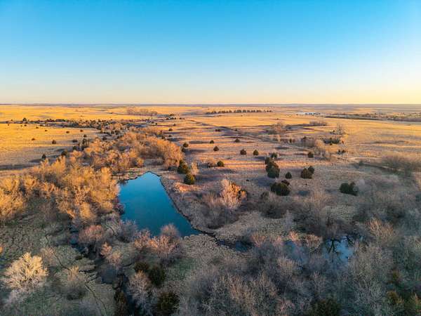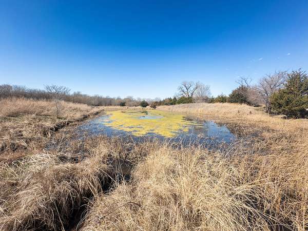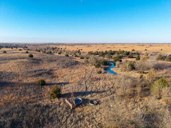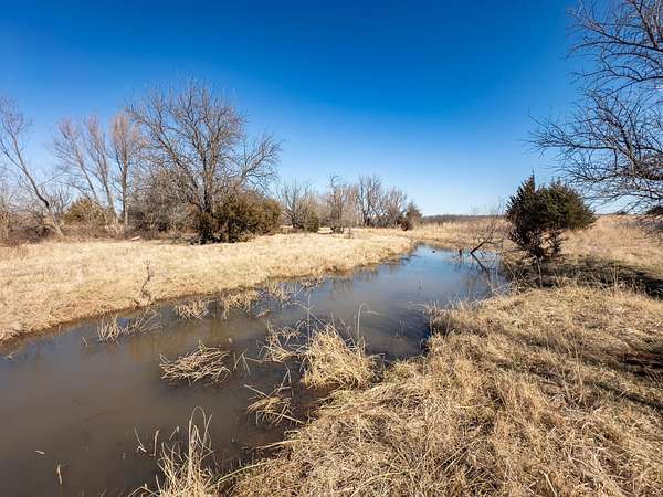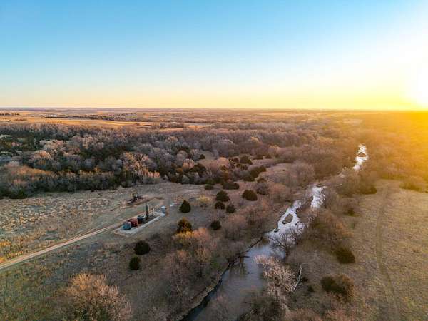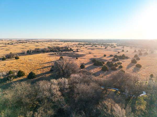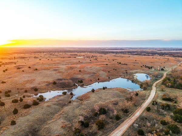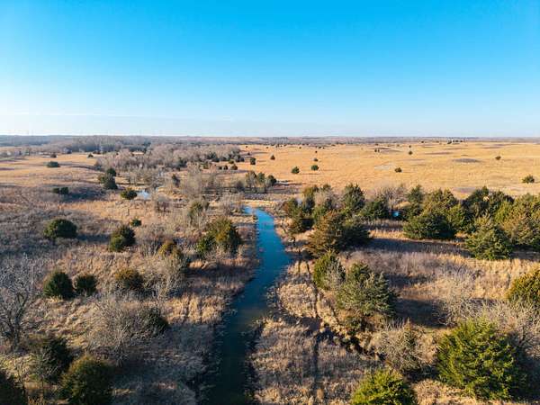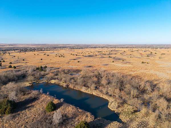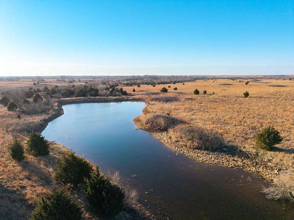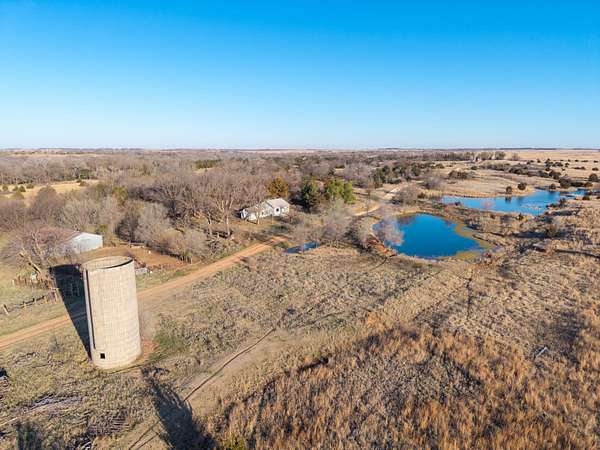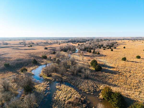 Spanning an impressive 638.9 +/- acres in Kingman County, Kansas, this property offers a rare combination of productive ranch ground and excellent wildlife habitat. The property is located approximately 55+/- minutes WSW of Wichita. It is also just 17+/- minutes south of Kingman. This location provides the quiet and privacy of rural Kansas while still being within a comfortable drive of town. The Chikaskia River bends through the southeast corner of the property which is a natural travel corridor for wildlife and provides a consistent water source. Two additional tributary creeks run through the property as well. One creek is located on the west side and the other runs through the east side. On top of that, there are six ponds scattered across the ranch. These ponds provide water for livestock and also attract wildlife throughout the year! The Chikaskia River Ranch offers outstanding hunting opportunities! The mix of tall native grasses, scattered blocks of mature timber, and cedar thickets creates excellent habitat. Whitetail deer thrive in this type of cover and use the area regularly, and turkey numbers are strong in the area! Multiple gobblers were heard one morning while recently on the property! Ducks make use of both the river and the ponds during the season. Quail and dove also benefit from the native grasses and cedar cover. In addition to hunting, several of the ponds hold fish which provides additional recreational opportunities! When it comes to running cattle, the property is fenced and ready to be used instantly! A corral is located near the barn and the old farmhouse providing you the improvements and potential to make this a working ranch. The house on the property would make a great fixer upper and with some work, it could become a hunting lodge, weekend retreat, or ranch headquarters. There are also multiple producing oil wells located on the property. All of the seller's mineral rights will convey with the sale. This provides additional income potential and long term value! Large tracts with this much water, wildlife habitat, and income potential are not easy to find in Kingman County! The Chikaskia River Ranch offers a strong combination of ranching, recreation, and investment value! All showings are by appointment only. If you would like more information or would like to schedule a private viewing please contact Jacob Lemons at (620) 501-3688 . Disclaimer: The boundary lines shown are approximate and are provided for general reference only. Arrowhead Land Company makes no representations or warranties, express or implied, as to the accuracy, completeness, or reliability of those property lines. Buyers are advised to obtain an independent survey to verify exact property boundaries.