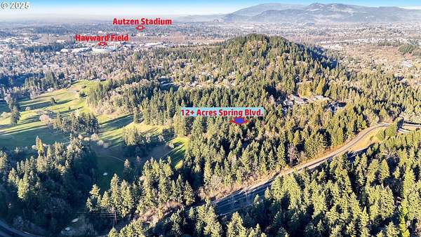 Est $12,557/mo12+ Acres in the very heart of Eugene's most sought after area bordering Laurelwood Golf Course. A very special setting for one custom home nestled in the forest with dramatic natural features and/or the pristine golf course valley. Excellent development potential for large lot subdivision or a unique small lot neighborhood. Designs shown are concepts only. Buyers to verify uses to their own satisfaction.