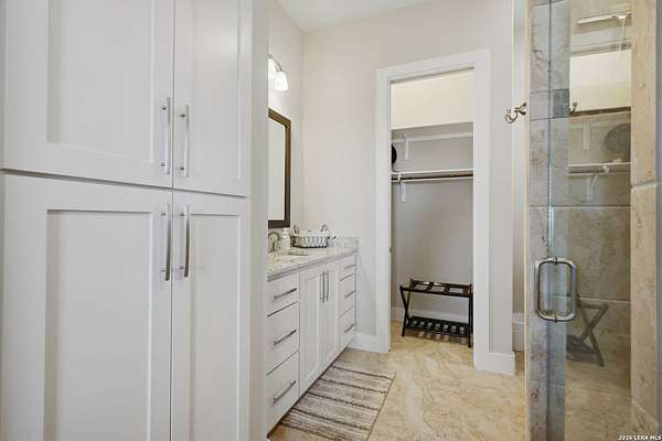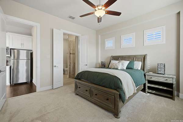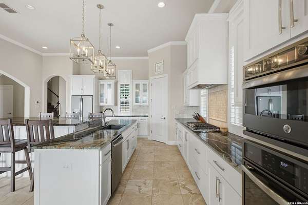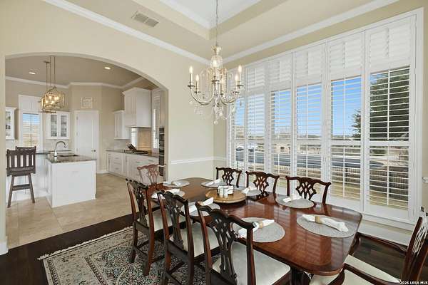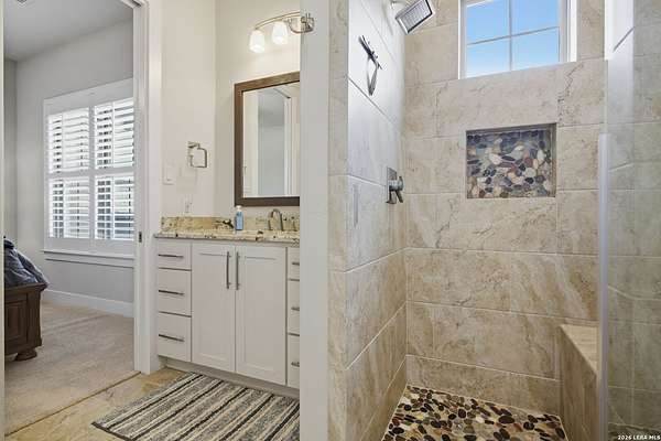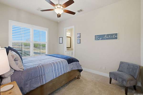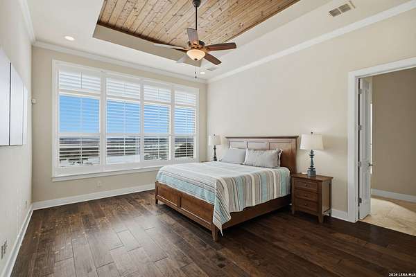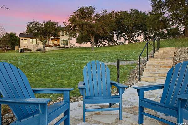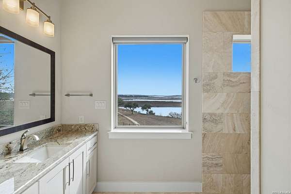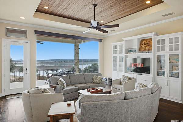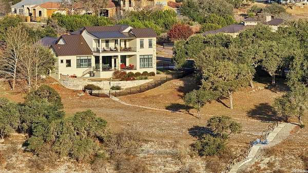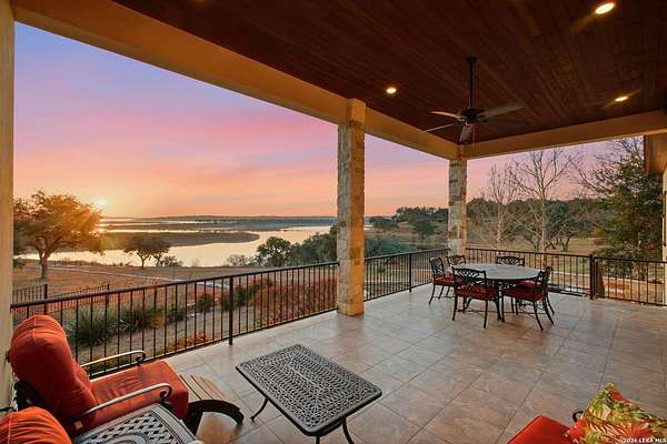 Experience true lakefront living in this stunning custom home located in the gated Peninsula at Mystic Shores on Canyon Lake. Set on 1.71 acres of prime waterfront with shoreline access, this 3,987 sq ft residence offers breathtaking, unobstructed lake views through expansive floor-to-ceiling windows that flood the home with natural light. This thoughtfully designed home features 4 bedrooms, each with its own private en suite bathroom, 4.5 baths. The open-concept living area showcases beautiful wood-paneled ceilings in both the main living room and primary suite, creating a warm yet refined atmosphere while framing panoramic water views. The large kitchen offers plenty of storage and workspace, ideal for entertaining and everyday living. A second-floor mini kitchen adjacent to the media room provides added convenience for guests or extended gatherings. Enjoy outdoor living with two spacious patios overlooking the lake, perfect for relaxing, dining, and taking in the scenery. The primary suite includes a custom walk-in closet with built-in storage for exceptional organization. Additional highlights include propane utilities and a three-car garage with ample space for vehicles and lake gear. With rare lakefront access, generous acreage, and luxury finishes throughout, this home delivers the ultimate Canyon Lake lifestyle in one of Mystic Shores' most desirable gated sections.