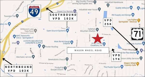 Make your mark in one of Springdale's centrally located corridors conveniently situated between I-49 and heavily trafficked 71-B. Average vehicles per day 17K on Wagon Wheel Road and 25K on 71B. The sites are ideal for residential development, office space, business strip center, storage, and more. The properties are zoned for residential and agriculture, and adjacent to commercial. Contact the city for commercial zoning approval. Fantastic opportunity for investors of all kinds; purchase the entire bundle or use a smaller parcel to build a secluded oasis. This property can be zoned for multi-family and commercial. Please reference MLS 1287440, 1287451