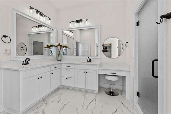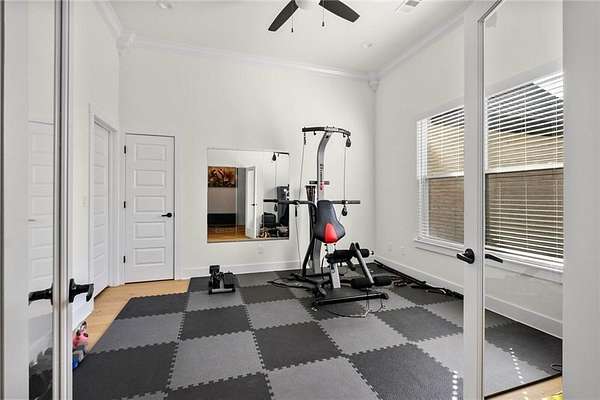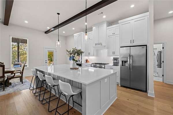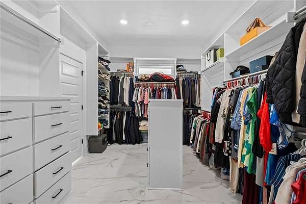 - Attic Storage, Blinds, Built-Ins, Ceiling Fans, Central Vacuum, Eat-in-Kitchen, Ice Maker Connection, Quartz Counters, Smoke Detector, Split Floor Plan, Walk-In Closets, Wet Bar, Wired For Sound