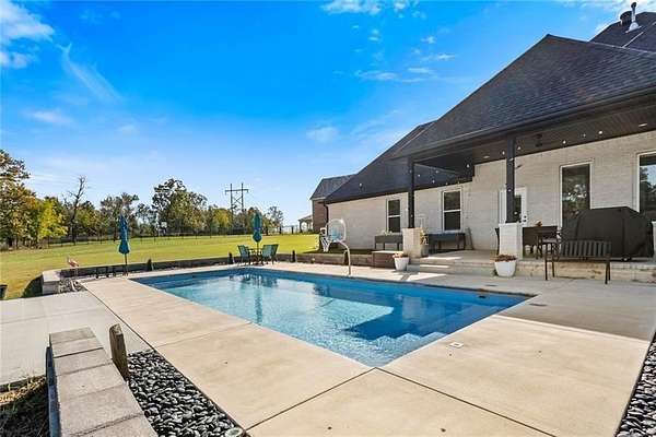 Privately positioned at the end of a quiet cul-de-sac within one of NWA's most exclusive gated communities, this exceptional 4br 4.5 bath estate sits on 2.82 beautiful acres. The property offers a heated saltwater pool, expansive backyard with newly installed 6ft tall steel fence & serene natural surroundings. Inside you'll find elegant & modern living spaces, a designer kitchen, & luxurious primary suite complemented by a fitness or flex space & additional bonus room. Just minutes from I-49 & XNA, this residence delivers privacy, sophistication, & convenience in perfect balance.