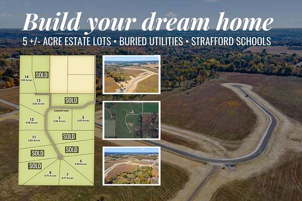Est $2,048/mo5.02 acres! Wonderful place to build in East Springfield. Great location close to Costco, Hickory Hills Country Club, and Menards! Strafford school district.