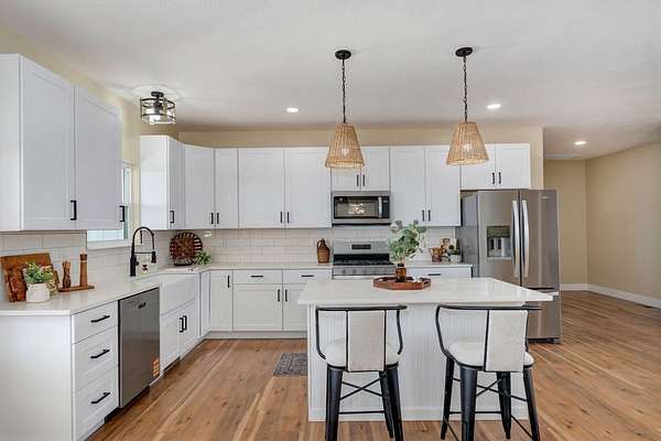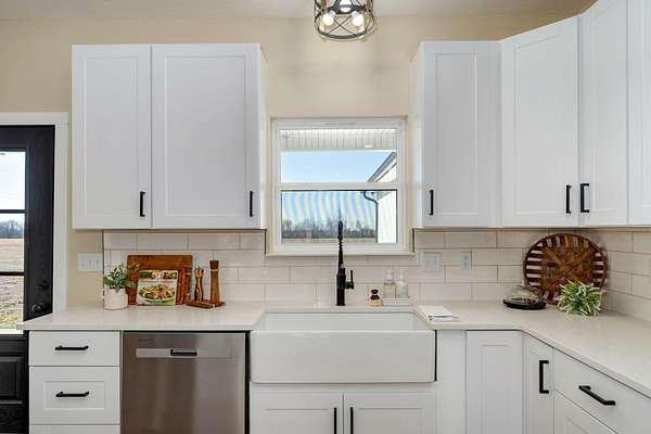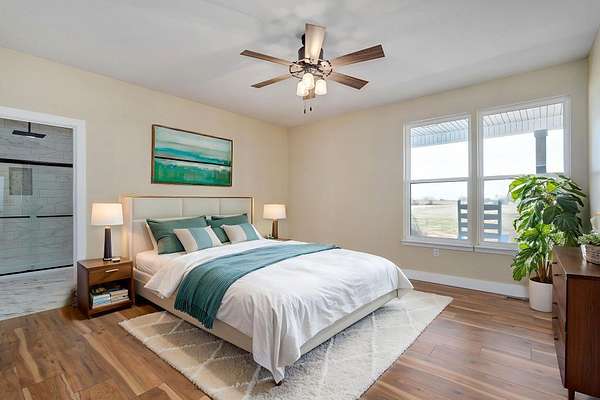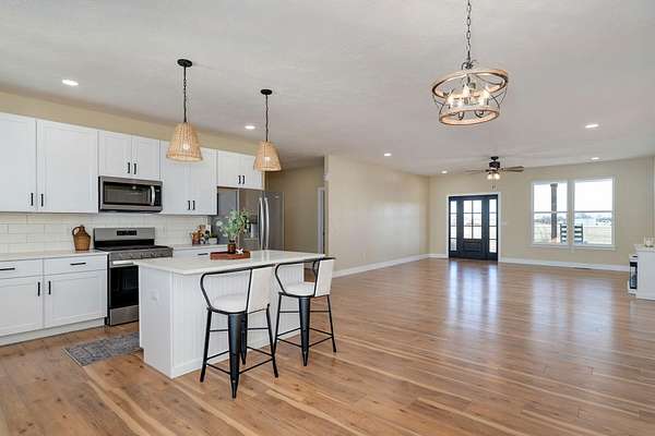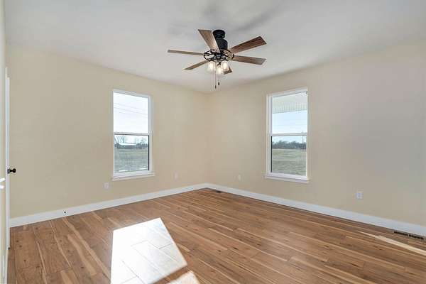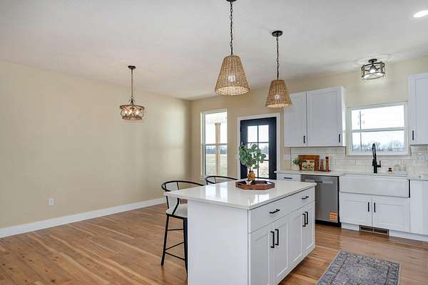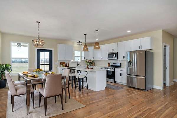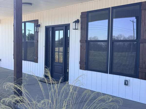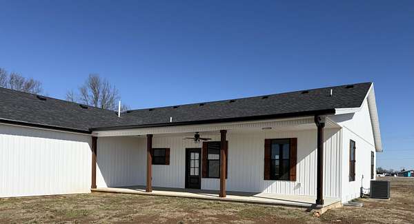 Discover your dream home in this brand new, custom-built modern farmhouse, situated on 5 serene acres. Located within the desirable Republic school district, this property offers 2,400 sq ft of open living space, including 2 full baths and 1 half bath. Enjoy the blend of durability and style with wood laminate and tile flooring throughout.The kitchen is a chef's dream perfectly designed for both everyday life and entertaining. It boasts a propane gas stove/oven, a classic farmhouse sink, granite countertops, and a central kitchen island. All appliances, including the refrigerator, are included. A large 4x8 pantry offers superior storage, and the eat-in kitchen provides the perfect setting for a large farmhouse table. The open-concept living room features an electric fireplace and direct access to the covered back patio, ideal for relaxing and enjoying beautiful sunsets.The primary suite is strategically positioned off the kitchen, near a large laundry room and a convenient half bath for guests. The primary bathroom has a tiled walk-in shower with a rain head, a relaxing soaker tub, and dual sinks. The impressive 11x14 walk-in closet offers ample storage. The nearby laundry room enhances functionality with abundant cabinetry, shelving, and a 6-foot countertop.Two secondary bedrooms are located on the opposite side of the home, sharing a full bath with a tub/shower combination. Enjoy outdoor living with both a large covered front porch and a covered back patio--perfect for relaxing and taking in the surrounding acreage. Convenient to James River and I-44, making commuting a breeze.