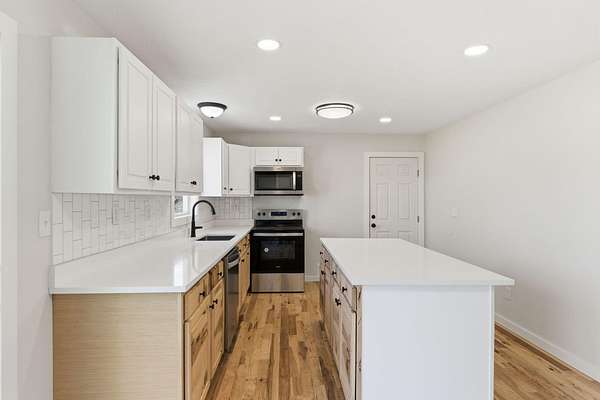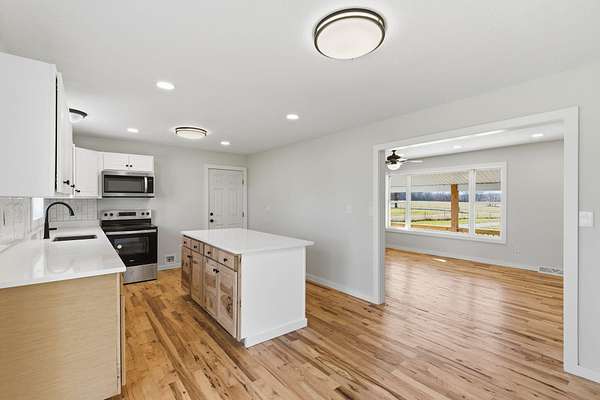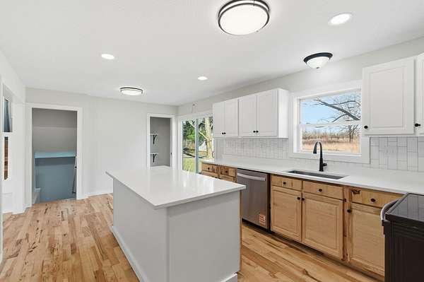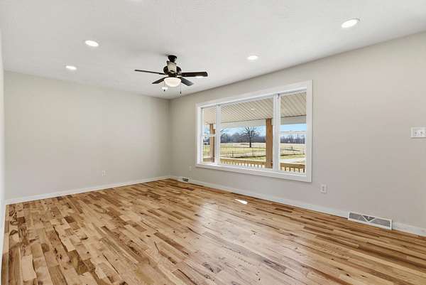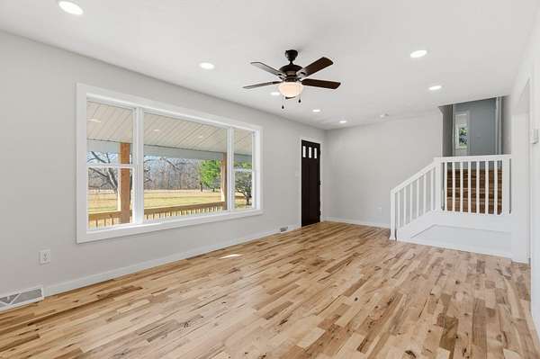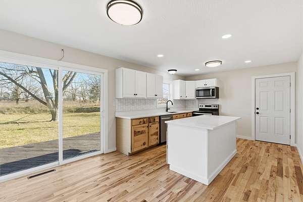 Nestled on 4.8 picturesque acres, this updated split level home offers the perfect blend of space, privacy, and convenience, all within Springfield and located in the highly sought after Willard School District. A covered front porch welcomes you into a bright living room featuring hardwood floors and an easy, functional flow into the heart of the home. The updated kitchen is designed for both everyday living and entertaining, showcasing an island, tile backsplash, stainless steel appliances, pantry, dedicated dining space, and sliding door access to the backyard with peaceful views of the acreage. The thoughtful split level layout provides room for everyone. The upper level features four bedrooms and a full bath, while just a few steps down from the main living area you will find the spacious primary bedroom retreat complete with a large walk in closet, updated primary bath with walk in shower, and a conveniently located laundry room. The finished lower level adds even more flexibility with a sixth bedroom and half bath, ideal for guests, a home office, or recreation space. Recent updates include a newer roof and HVAC system, adding peace of mind to this move in ready property. Enjoy the tranquility of country living with the convenience of being minutes from town and easy access to I-44. This well cared for home offers acreage, space, and a desirable split level design that is hard to find.