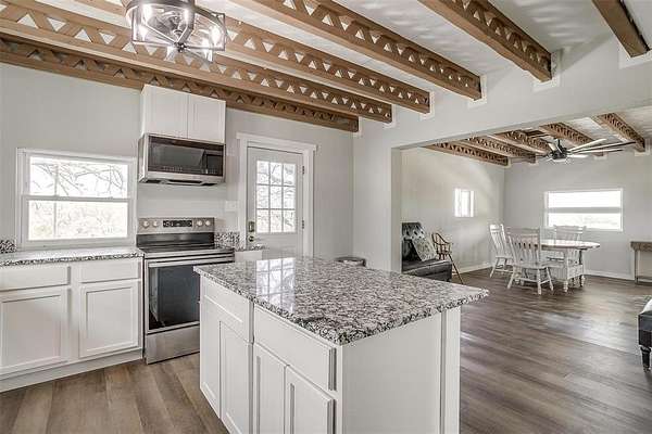 - Built-In Features, Chandelier, Decorative Lighting, Eat-In Kitchen, Granite Counters, In-Law Suite Floorplan, Kitchen Island, Open Floorplan, Walk-In Closet(s)