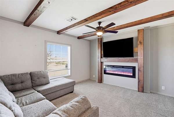 Escape to peaceful country living in Springtown, TX. Situated on 3.1 acres, this 2020 modern farmhouse-style manufactured home offers 2,040 square feet, 4 bedrooms, and 2 bathrooms, providing the perfect blend of comfort, space, and functionality.