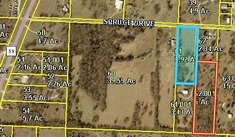 From Exit #20, off of I-49: East on Hwy AA for 1.1 miles to Hwy 59; South on Hwy 59 for 1.5 miles, to Spruce Drive; East on Spruce Drive 3/10ths of a mile to subject property, on your right.