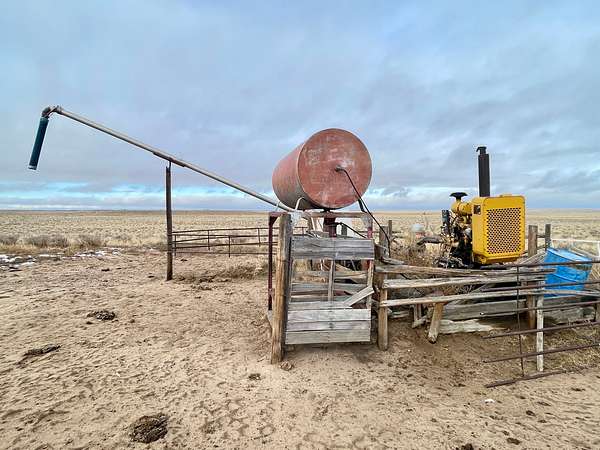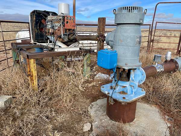 The property is fenced on 3 sides, and has two irrigation wells. One well pump is operated off of a propane fueled engine and has a maximum pumping rate of 550 gallons per minute and decreed to irrigate up to 240 acres. The second well pump is powered by a diesel engine and has a maximum pumping rate of 420 gallons per minute and decreed to irrigate up to 85 acres. There's a center pivot base and underground pine line from the wells to the pivot base. The pivot formerly irrigated 112 to 125 acres as recently as 2008.